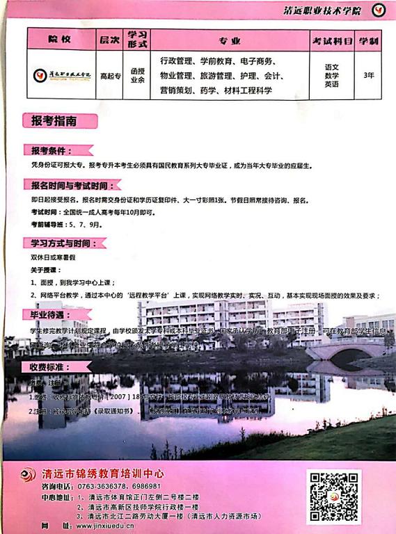 共青團清遠市委員會2017年圓夢計劃正式啟動!【北京大學圓夢計劃,圓你大學夢】成人本科:北京大學(網(wǎng)絡(luò)教育)符合條件者3年共交學費2000元,專科:清遠職業(yè)技術(shù)學院(成人函授),符合條件者3年共交學費1000元,就能完成學業(yè),輕松拿證!另外,企業(yè)人力資源管理師職業(yè)資格考證、叉車上崗證考證等現(xiàn)火熱接受報名中,歡迎有志提升自己的朋友咨詢報名。咨詢熱線:成老師0763-3630112 15816286696微信同步 報名地址:清遠市北江二路勞動大廈一樓